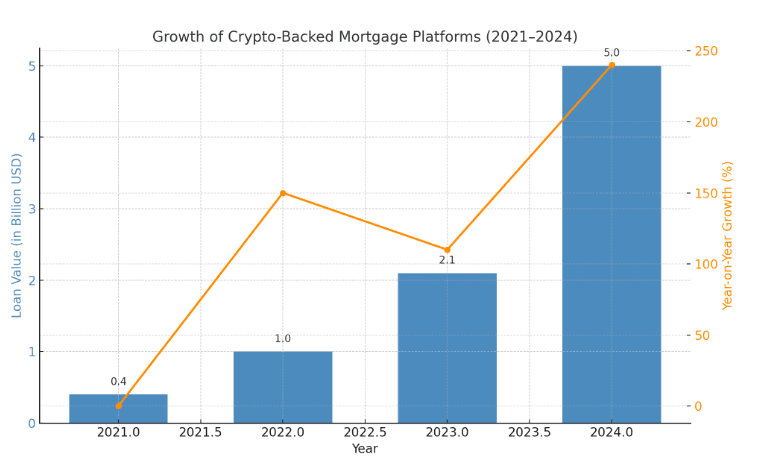Crypto mortgage platforms made headlines in 2024 by originating over $5 billion in loans globally a staggering 240% increase from the previous year. This explosive growth signals more than just a passing trend; it reflects a major shift in how homeowners and investors are thinking about real estate financing in the digital age.