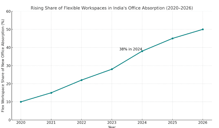 Interesting Insight: In 2024, 38% of India’s new office absorption came from flexible workspace operators.