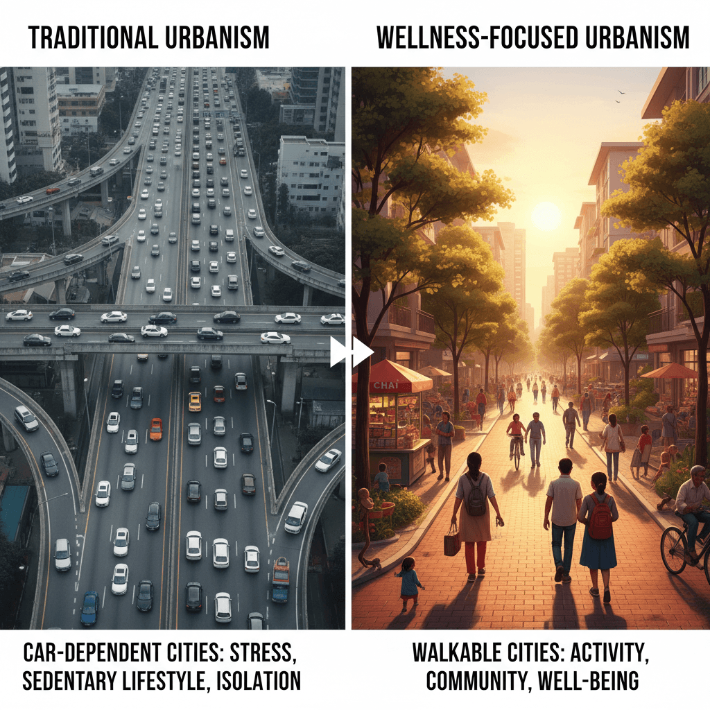 Urban research from cities like Copenhagen, Kyoto, and Barcelona consistently shows that residents of walkable, low-friction neighbourhoods experience better overall well-being. They sleep more soundly, live longer, report higher daily satisfaction, and spend significantly less on healthcare. These outcomes aren’t accidental—they are the result of environments designed around human movement, not automotive convenience.